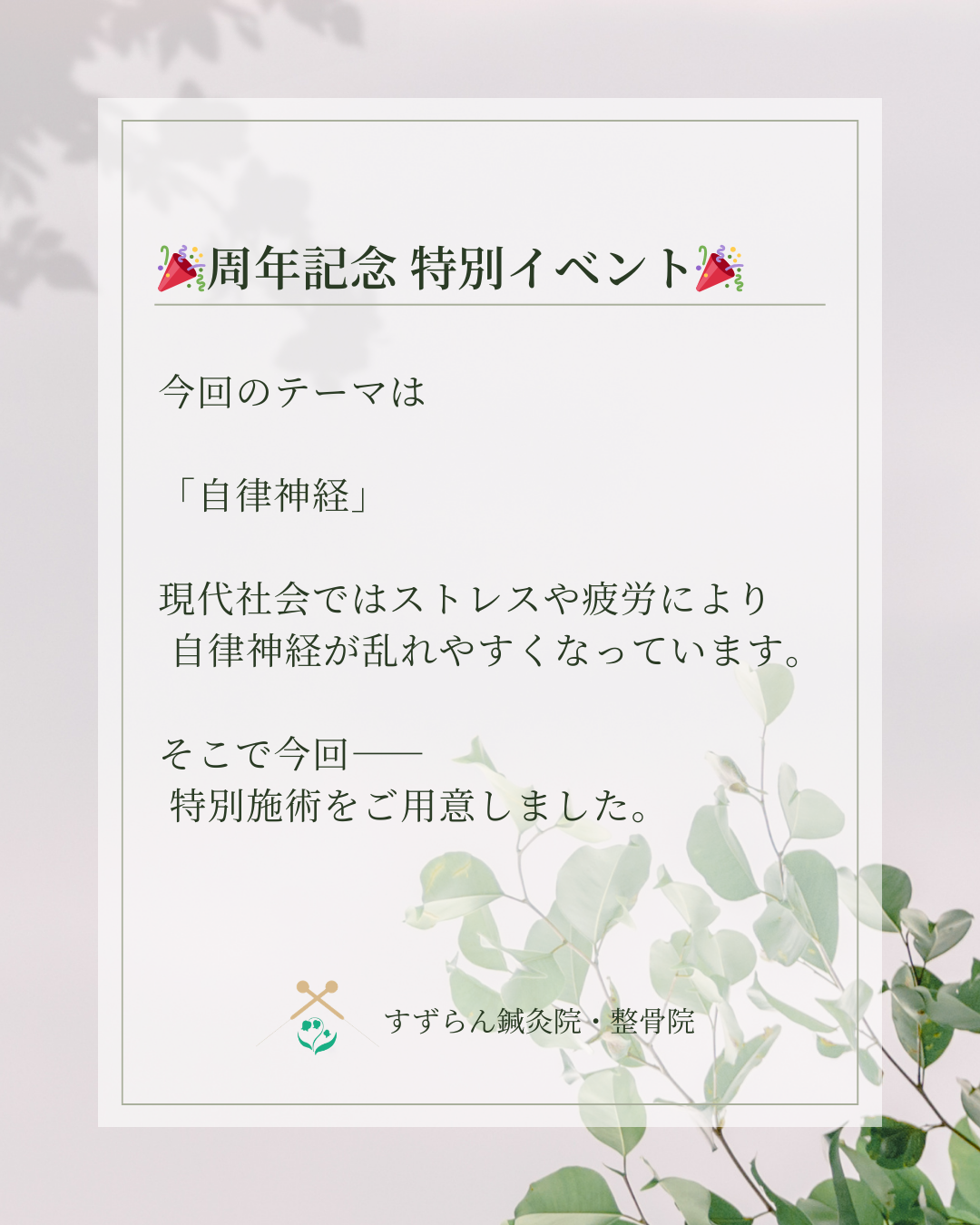 何卒、今後ともすずらん鍼灸整骨院をよろしくお願いいたします。